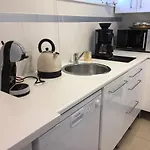 عزز إقامتك بمنطقة المطبخ الصغير المجهز المجهز بثلاجة والفرن وأدوات المطبخ لراحتك في مكان الإقامة.